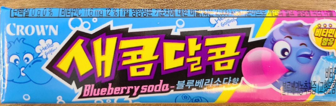 껌코너를 둘러보다가 뭔가 알록달록하고 처음 보는 모습이 눈에 띄어 하나 주워 든 새콤달콤 블루베리소다맛입니다.
